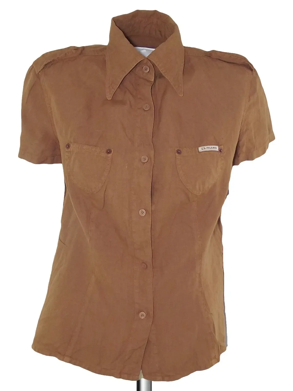 8 review(s) for "Phard Shirt Shirt Women Brown Short Sleeve Linen Made Italy It40 Eu36 S Small"